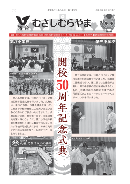 2026年1月6日 / 最終更新日 : 2026年1月6日 きし保育園 教育むさしむらやま 教育むさしむらやま第119号 武蔵村山市の教育広報誌「教育むさしむらやま」が発刊されました。下記よりご覧ください。 ↓ 画像をクリックでPDF表示 ↓ PDFファイルの閲覧にはAdobe Reader日本語版(無償)が必要です。最新のAdobe Readerをダウンロードするには、次のリンクを押してください。Adobe Reader
